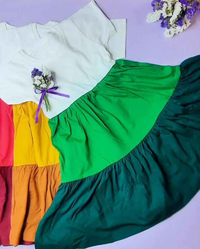 پیراهن دخترانه مدل پله ای ۳ رنگ کد ۱۵۱۰