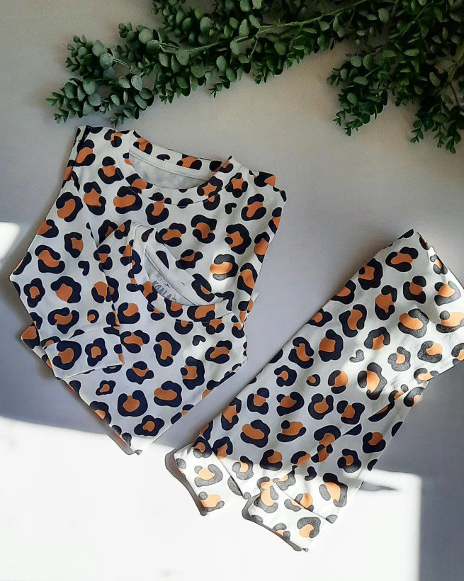 ست بلوز و شلوار دخترانه پلنگی مناسب ۱ سال تا ۸ سال جنس نخ پنبه بدون آبرفتدو رنگدهی اگه لک شد با خیال راحت بندازش تو وایتکس هیچیش نمیشه