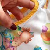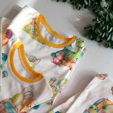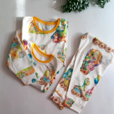 ست بلوز و شلوار جوجه ها مناسب ۶ ماه تا یک و نیم سال جنس کار نخ پنبه اگر لک شد با خیال راحت بندازش تو وایتکس هیچیش نمیشه