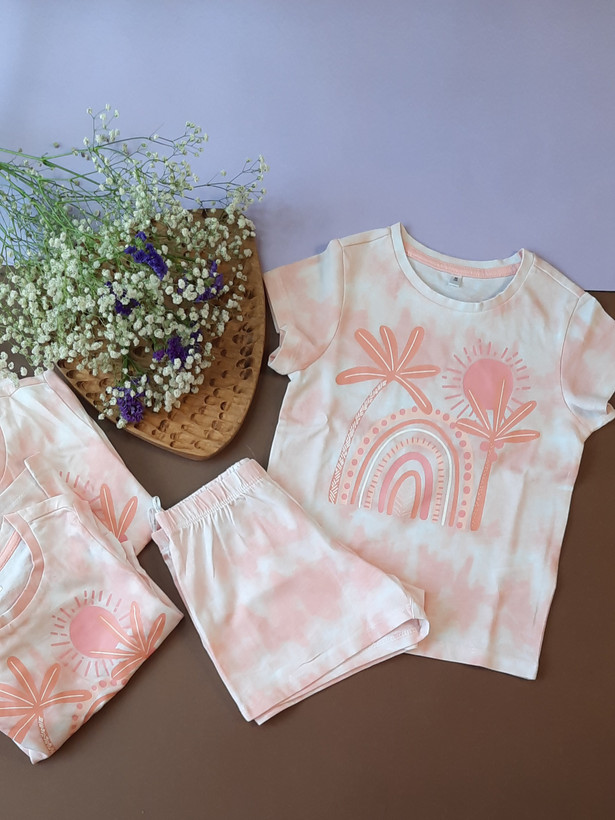ست تیشرت و شورتک دخترانه مدل آبرنگی کد ۱۳۱۵ برند C&A