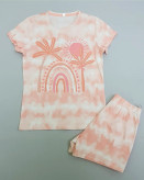 ست دخترانه وارداتی طرح رنگین کمان آبرنگی ۱۰۰٪ نخ رنگ کار ثابت با کیفیت بالا در دو سایز ۱ سال و ۲ سال