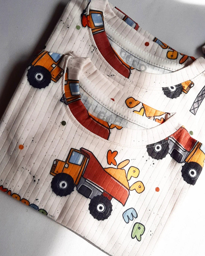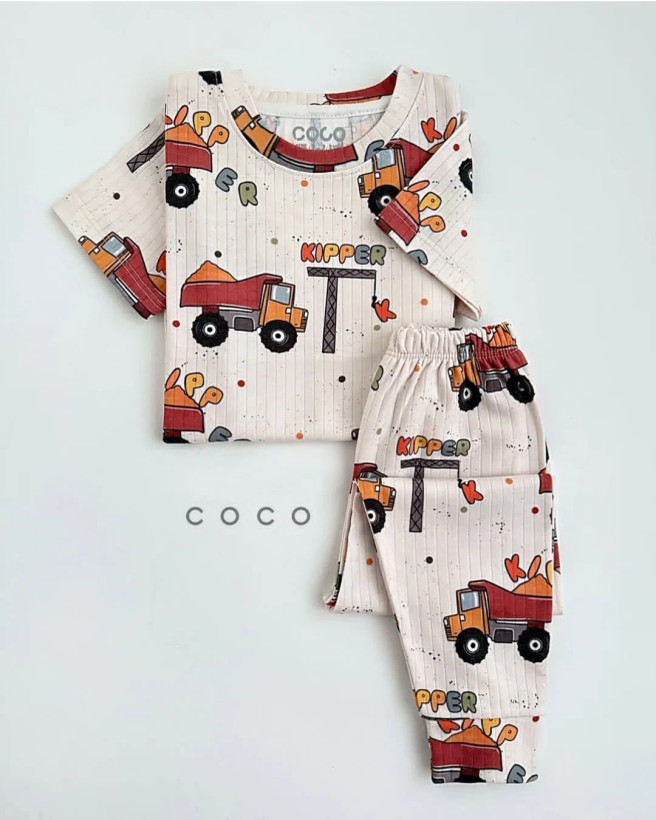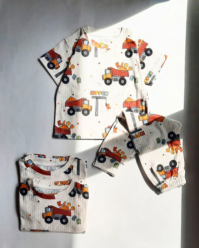 ست تیشرت و شلوار کامیون مناسب ۱ سال تا ۳ سال جنس نخ پنبه کبریتی خنک و مناسب فصل بدون آبرفت و رنگدهی اگه لک شد با خیال راحت بندازش تو وایتکس هیچیش نمیشه