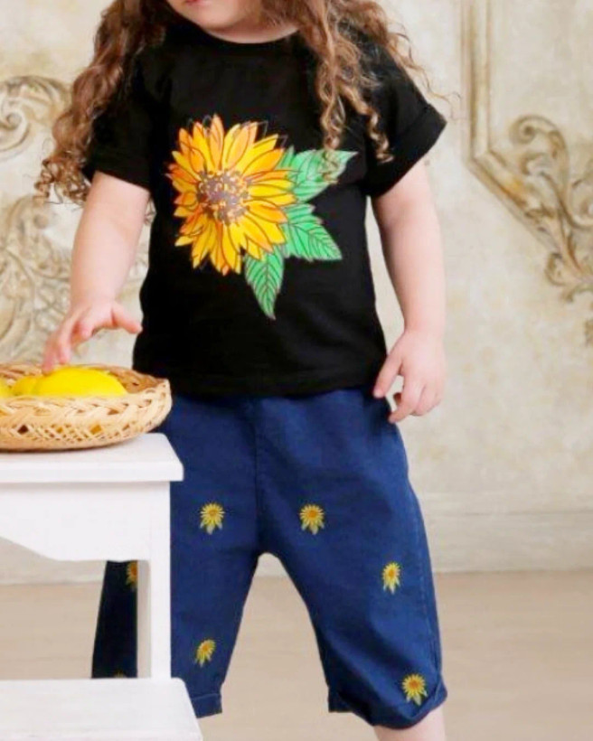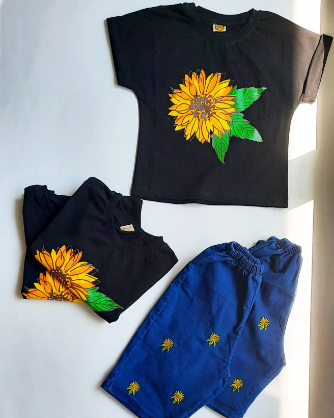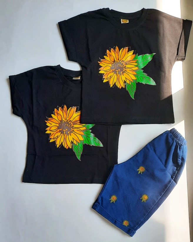 ست تیشرت و شلوارک دخترانه طرح آفتابگردان کد ۱۳۳۴ برند jamak