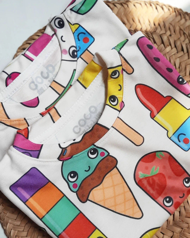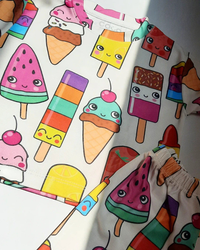 ست تیشرت و شلوارک بچگانه طرح بستنی کد ۱۳۳۷ برند coco