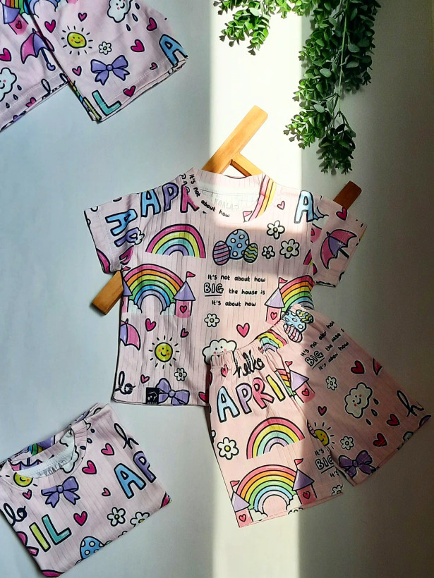 ست تیشرت و شلوارک April مناسب ۱ سال تا ۸ سال جنس نخ پنبه کبریتی کاملا خنک و مناسب فصل بدون آبرفت و رنگدهی اگه لک شد با خیال راحت بندازش تو وایتکس هیچیش نمیشه