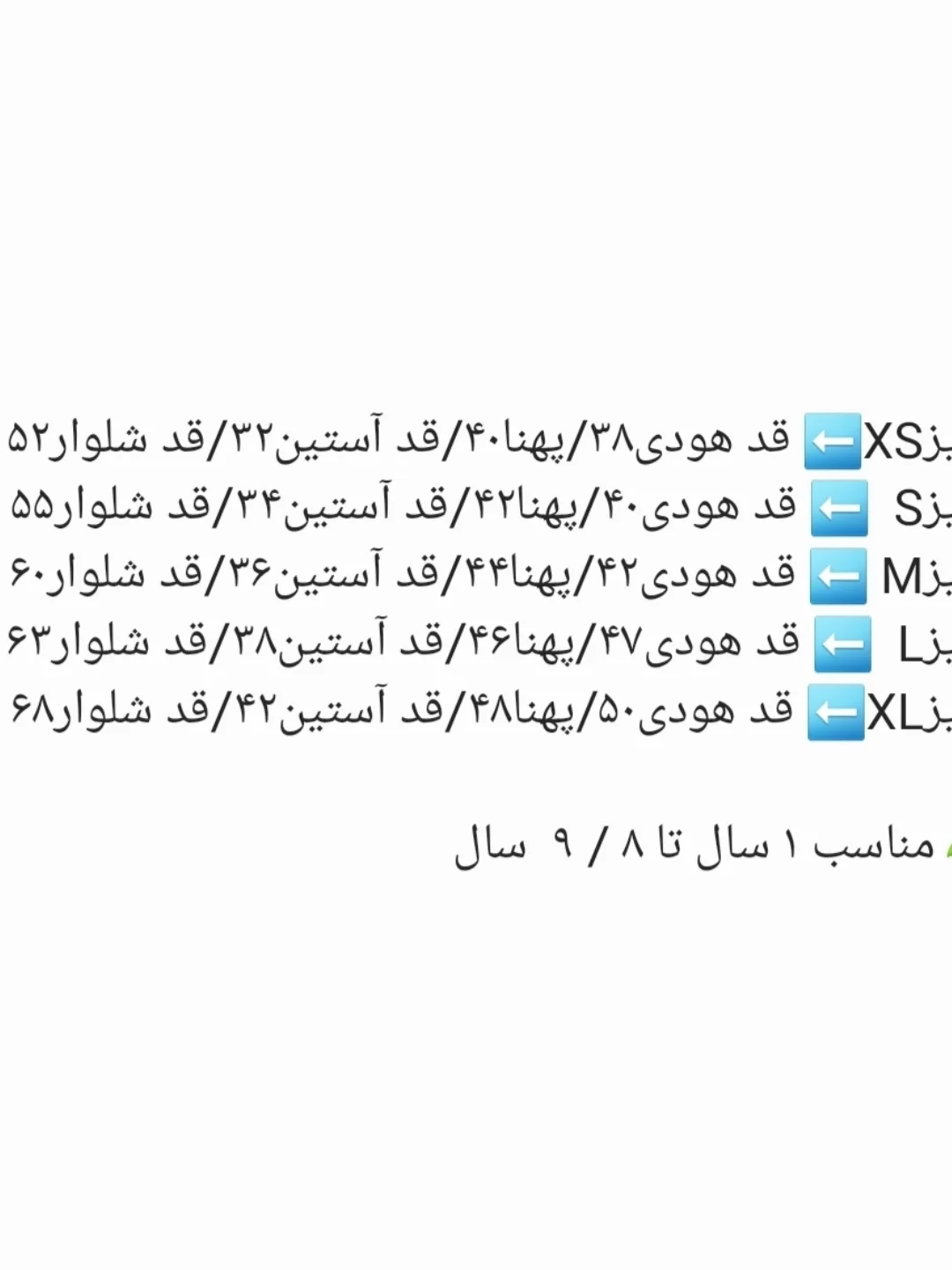 پاییز امسال رو با این هودی شلوارها متفاوت شروع کن که هر مامانی برا این فصل دنبالشه هم میتونی تک بپوشی هم برا زیر پافر مناسبه خلاصه که کل پاییز و زمستون عصای دستت میشه با یه کیفیت بی نظیر مشخصات دقیق : جنس کار دورس سه نخ اور سایز ضمانت چاپ، پارچه و دوخت مناسب ۱ سال تا ۸ سال