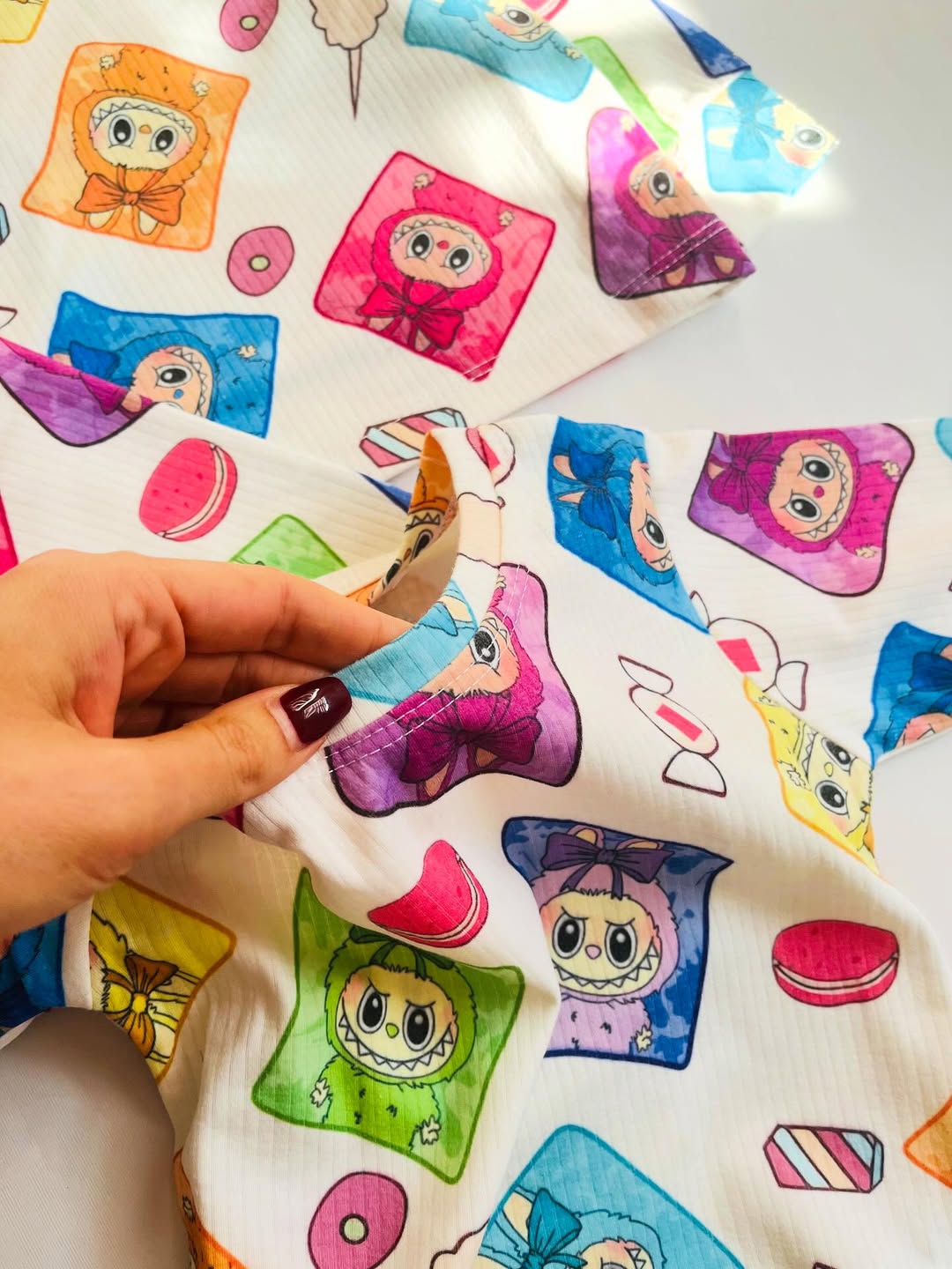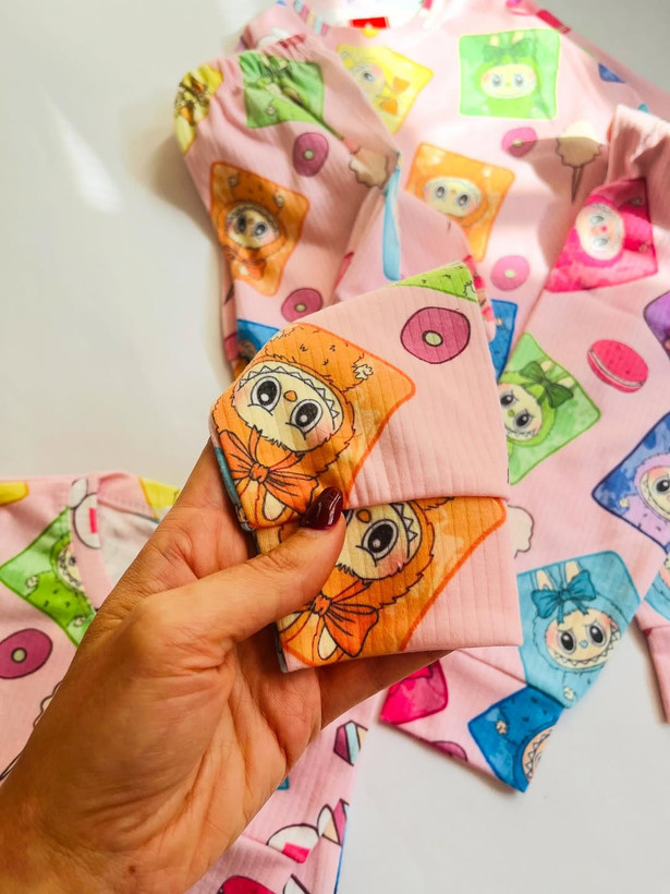 ست بلوز و شلوار لبوبو برای سنین ۱ تا ۶ سال مناسب میباشد. جنس پارچه نخ پنبه بدون آبرفت و رنگدهی است. پارچه طرح کبریتی دارد