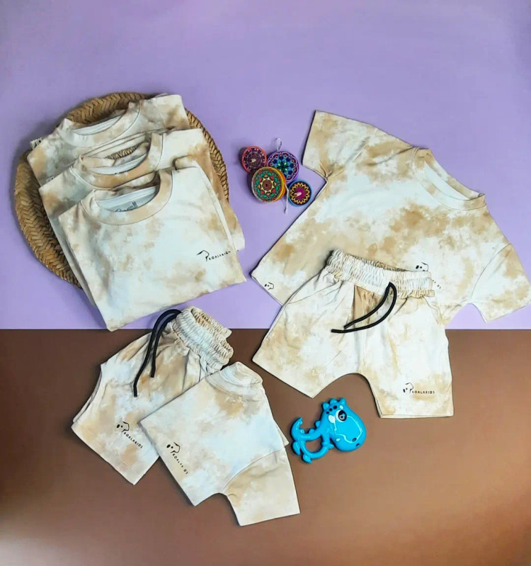 ست تیشرت و شلوارک مدل آبرنگی رنگ کرم کد ۱۴۱۲ برند koala