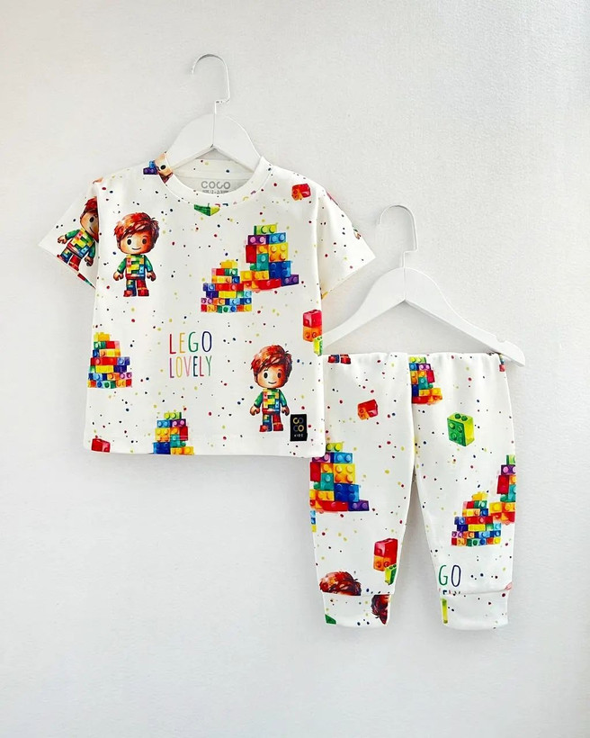 ست تیشرت و شلوار پسرانه طرح لگو کد ۱۲۱۴ برند COCO