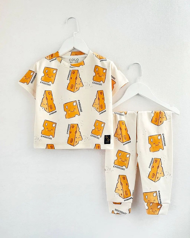 ست تیشرت و شلوار طرح پنیر کد ۱۲۱3 برند COCO