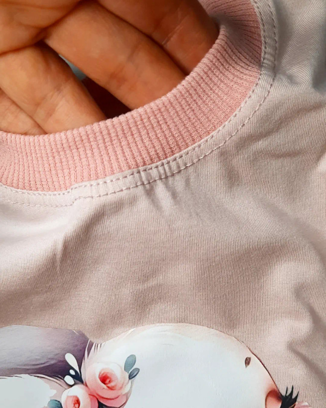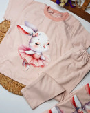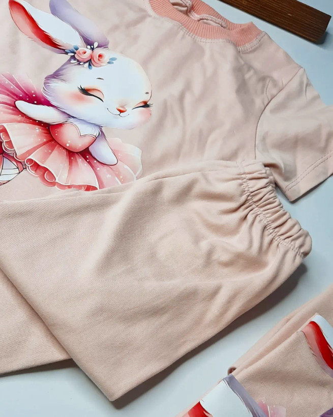 ست راحتی دخترانه طرح خرگوش بالرین جنس کار نخ پنبه اعلاء بدون آبرفت پرزدهی و رنگدهی در ۴ سایز مناسب ۹ ماه تا ۴ سال