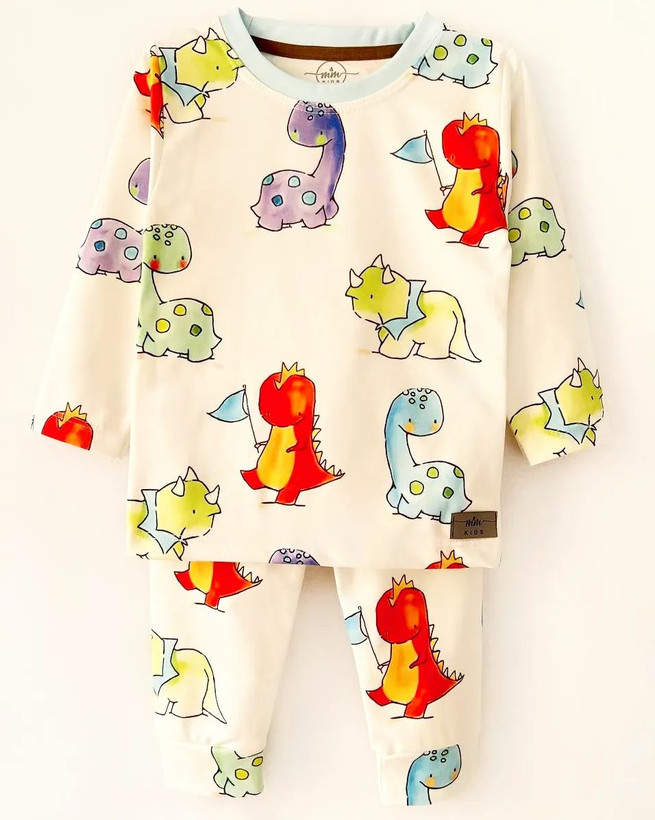 ست بلوز و شلوار پسرانه طرح دایناسورهای رنگی کد ۱۱۱۳ برند m&m