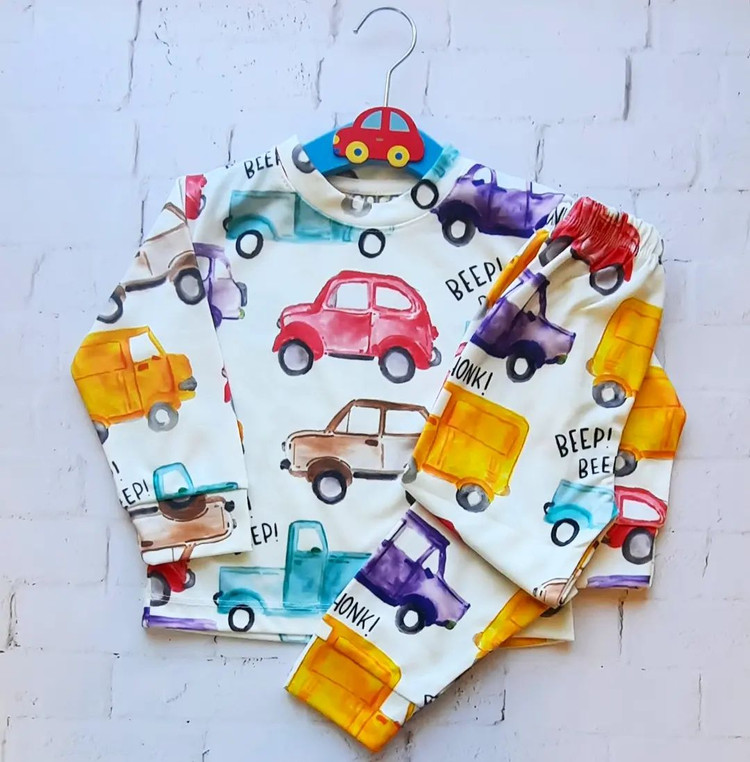 ست بلوز و شلوار پسرانه طرح ماشین های رنگی کد ۱۱۱۰ برند coco