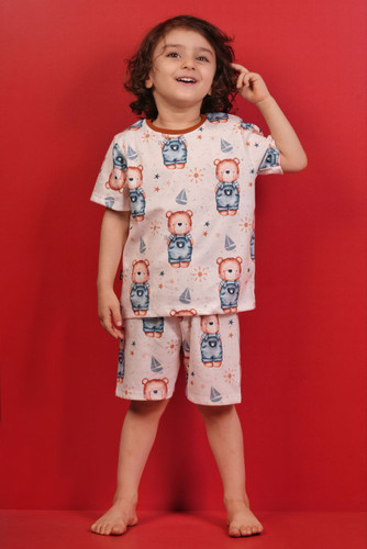 ست تیشرت و شلوارک بچگانه طرح تدی آبرنگی کد ۱۳۳۸ برند koala