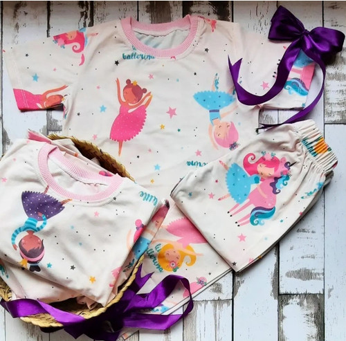 ست تیشرت شورتک دخترانه طرح یونیکورن و بستنی کد ۱۳۱۷ برند H&M