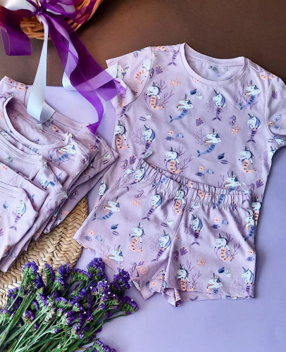 ست تیشرت و شورتک دخترانه مدل یونیکورن بنفش کد ۱۳۱۳ برند C&A