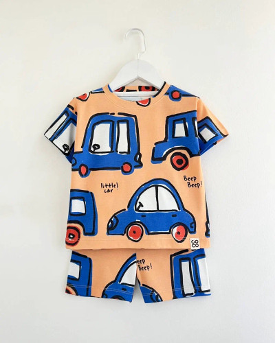 ناموجودست تیشرت و شلوارک پسرانه طرح ماشین نارنجی کد ۱۳۳۰ برند COCO